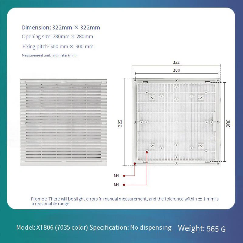 تنصیب کے لئے صرف بڑھتے ہوئے سطح کو صاف کرنے ، دھول کے احاطہ کو سیدھ میں کرنے اور اسے جگہ پر دبانے کی ضرورت ہوتی ہے۔ یہ تجویز کی جاتی ہے کہ صفائی کے لئے ویکیوم کلینر یا کمپریسڈ ہوا کا استعمال کرتے ہوئے دھول جمع کرنے کے لئے سہ ماہی معائنہ کیا جائے۔ جب وینٹیلیشن کی کارکردگی نمایاں طور پر گرتی ہے یا تحفظ کی تاثیر کو برقرار رکھنے کے ل resome نقصان ہوتا ہے تو فوری طور پر تبدیل کریں۔