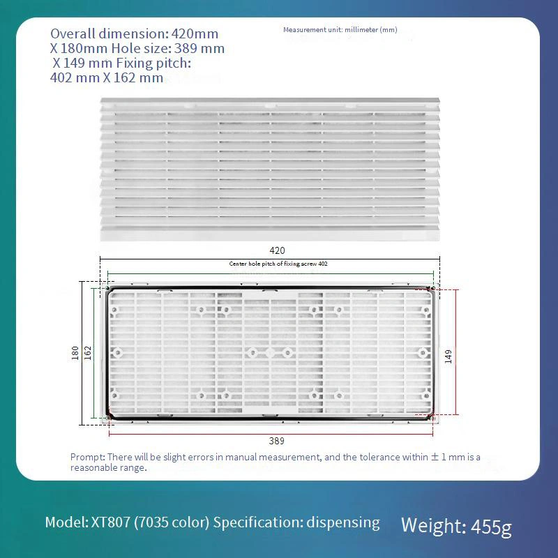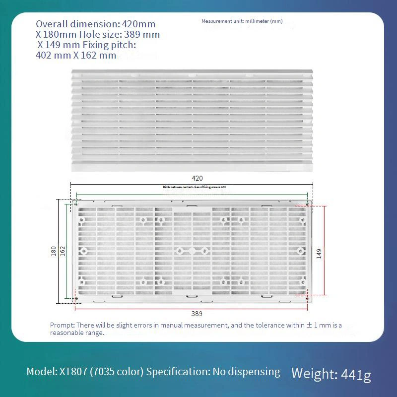 روزانہ کی بحالی اور متبادل کے ل a ایک قابل بدلے فلٹر میش ڈیزائن کی خصوصیات ، جس سے طویل مدتی آپریٹنگ اخراجات میں نمایاں کمی واقع ہوتی ہے۔ فریم ڈھانچہ ایک معیاری سفید گرے 7035 رنگ میں دستیاب ہے۔ یہ ایک ABS مواد سے تعمیر کیا گیا ہے جو طویل مدتی استحکام کو یقینی بناتے ہوئے عمدہ اخترتی مزاحمت پیش کرتا ہے۔
